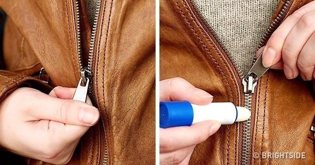Бальзам для губ або гігієнічна помада містить маслянисті з'єднання, тому вони відмінно підійдуть для змащування застібок-блискавок, які так швидко ламаються і заїдають.