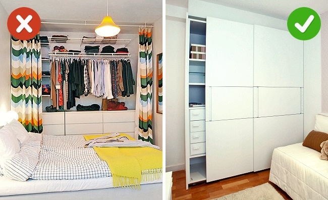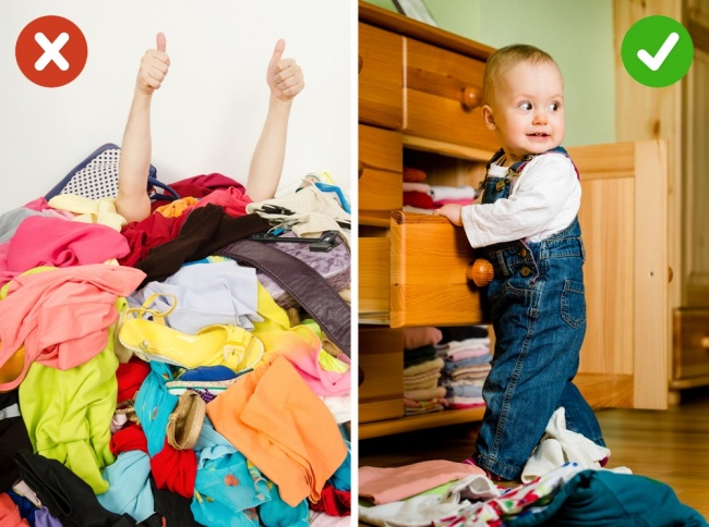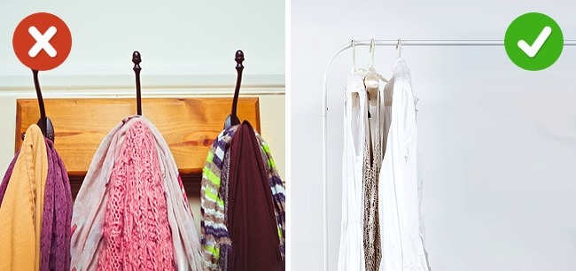 Не варто вішати додаткові гачки там, де без них можна обійтися. Пам'ятайте, вони незмінний джерело безладдя, чим більше їх в будинку, тим складніше потім знайти потрібну річ і змусити себе нарешті розвісити все в шафі.