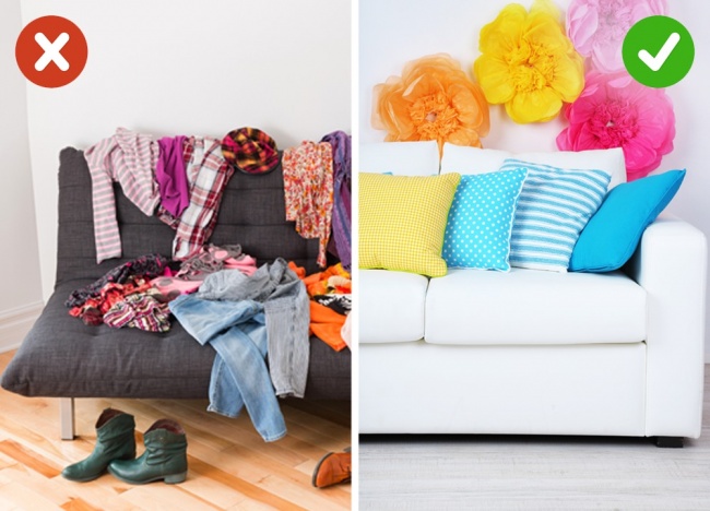 Краще все-таки розібрати полиці і навести на ньому порядок. Тоді ви не потрапите в незручну ситуацію, якщо гість випадково відсуне фіранку, щоб оцінити «вид з вікна».