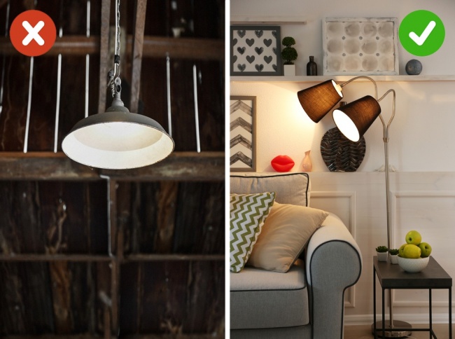 Додайте торшер, бра або хоча б повісьте на стіну гірлянду. Джерело додаткового теплого і м'якого світла миттю додасть кімнаті новий настрій, до того ж він дозволить варіювати ступінь освітлення в залежності від ситуації.