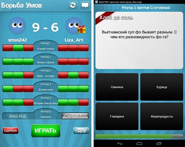 Інтелектуальна і захоплююча соціальна гра-вікторина, в якій можна змагатися в знаннях з різних областей зі своїми друзями і випадковими гравцями. Зараз у грі більше 25 000 цікавих текстових та візуальних питань. Крім цього, ви можете надіслати свій власний оригінальний питання і отримати за нього нагороду.
