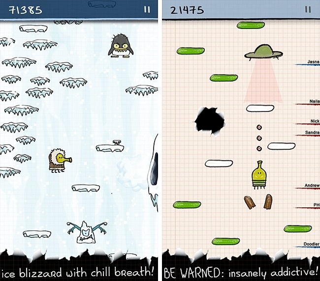Піднімайтеся як можна вище з картатим тетрадному листу, постійно перестрибуючи з однієї платформи на іншу, і підбирайте по шляху реактивні пакети. Намагайтеся уникати чорних дір і висаджуйте лиходіїв з кулястими носами.