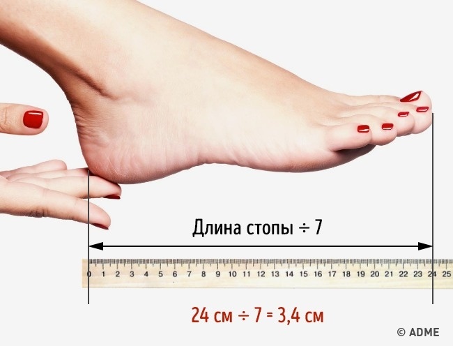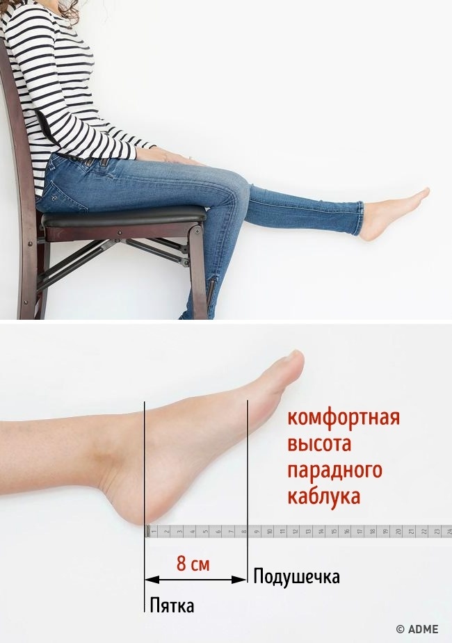 Цей спосіб визначить найбільш безпечну висоту каблука. Адже деякі особливо суворі лікарі стверджують, що «повсякденні» каблуки повинні бути від 2 до 4 див.