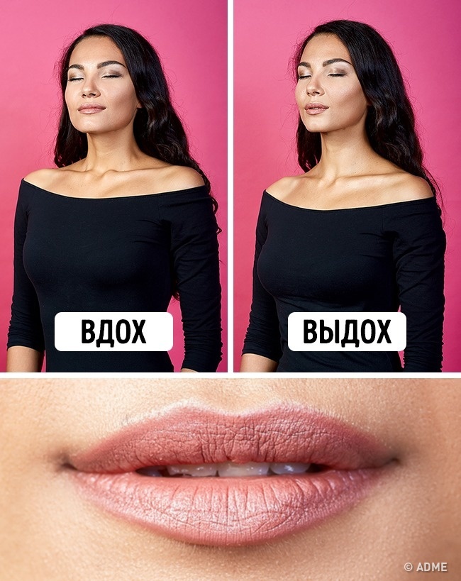 Зробивши повний вдих, зробіть посилений, глибокий видих крізь трохи разжатые губи. При цьому видих робіть як би порціями, виштовхуючи повітря зсередини.