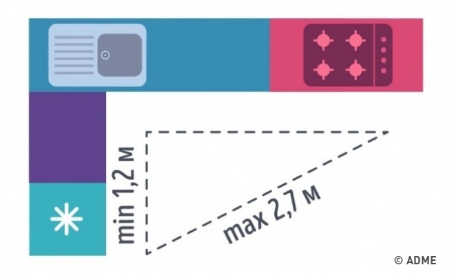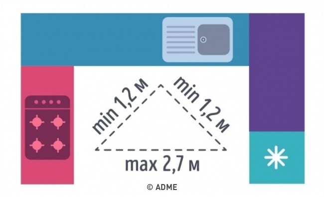 3. Холодильник + плита + мийка = «робочий трикутник», де ми проводимо більшу частину часу на кухні.