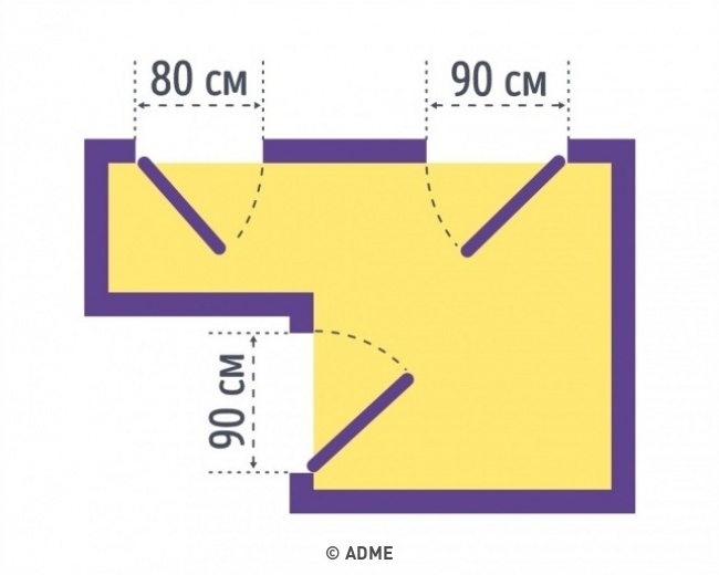 1. Двері та дверцята кухонної техніки і шафок повинні легко відкриватися і не мати серйозних перешкод на шляху відкривання. Ідеальним варіантом для вхідних дверей буде, якщо вона відкривається усередину кухні. Якщо ж у вас навпаки — ставте обмежувачі, щоб ручкою не зіпсувати холодильник або меблі, що стоїть біля входу.