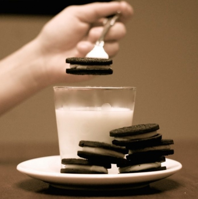 Цей трюк найкраще працює з видами печива, в яких є прошарок з повидла або крему, наприклад «Орео».