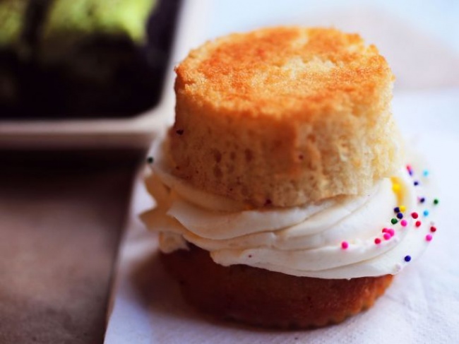Спробуйте розрізати капкейк навпіл і зробити з нього сендвіч. Так менше ймовірність забруднитися кремом і само по собі навіть смачніше.