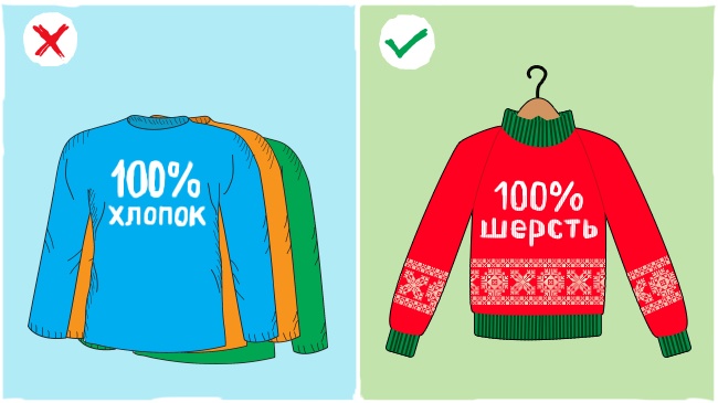 Пам'ятайте, що волога шкіра набагато швидше віддає тепло, тому дуже важливо якомога довше зберігати шкіру сухою. Також для того, щоб температура вашого тіла не падала занадто швидко, одягайте вовняні речі, які здатні поглинати набагато більше вологи. Одяг з бавовни або будь-яких інших тканин дуже повільно вбирає її, тому в речах з цих матеріалів ви замерзнете набагато швидше.