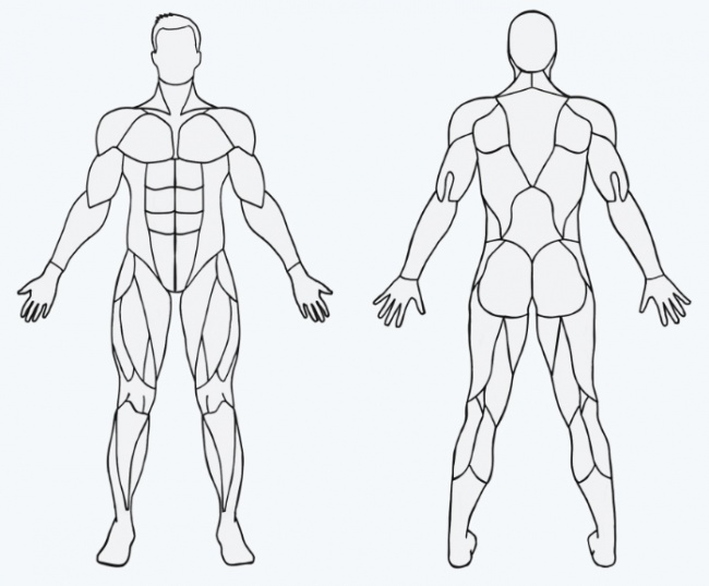Для чоловіків є окремий розділ з індивідуальним комплексом вправ. Клікаючи на потрібну м'язову групу, ви потрапляєте на сторінку з докладною інформацією про м'язах, їх будову і функції.