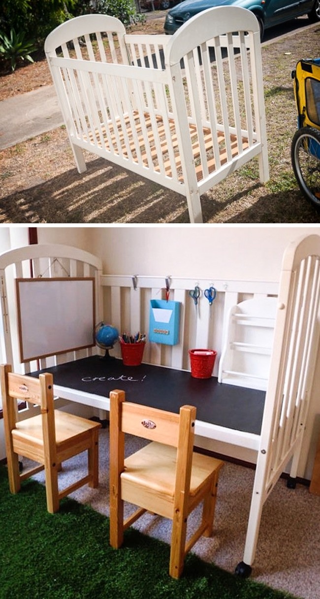 Якщо ваші малюки вже виросли з дитячого ліжечка, можна переробити її в зручне місце для творчості. Як це зробити, читайте тут.