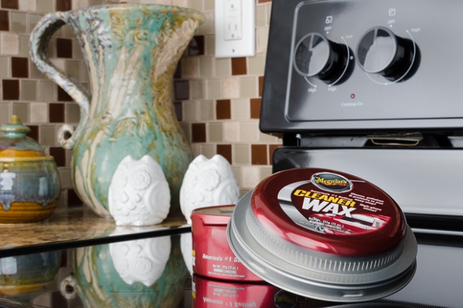 Навіть не думайте цього робити. Серйозно. Віск для автомобілів токсичний, а іноді і пожежонебезпечний. Зараз багато засоби для чищення плити залишають після себе тонку плівку, яка згодом дозволить набагато легше відмити поверхню від бруду. Використовуйте їх, а ще краще — усувати плями відразу після їх появи.