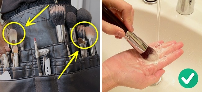 Кисті для макіяжу при неправильному використанні можуть стати причиною появи роздратування на шкірі, вугрів і інших неприємностей. Щоб цього уникнути, пензлики, спонжики, аплікатори та інші пристосування для макіяжу потрібно регулярно мити. Для цього чудово підійдуть звичайні антибактеріальні серветки, а для глибокого чищення можна використовувати делікатне миючий засіб типу м'якого шампуню або пінки для вмивання.