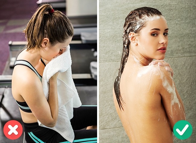 Душі в спортзалах можуть бути не самим комфортним місцем на світі, але закупорені пори, чорні крапки і прищі, які з'являються, якщо вчасно не змити з себе піт, безумовно гірше. Не лінуйтеся брати лазневі приналежності в спортзал і митися відразу після того, як закінчили тренування.