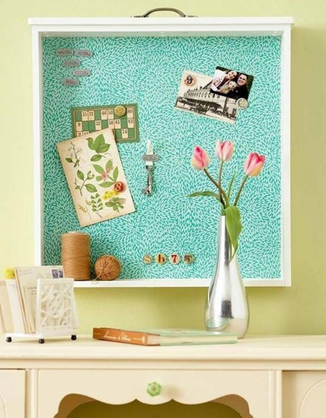 Як стильно оздобити ящики старого комода, наприклад, у вигляді коркової дошки, можна подивитися тут.