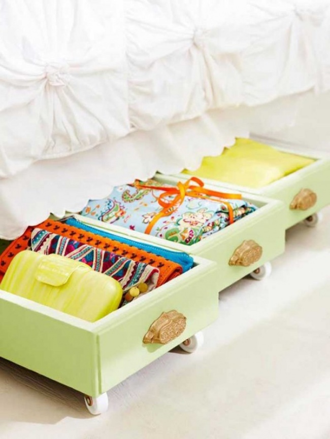 Ви зможете легко діставати їх з-під ліжка, забезпечивши коліщатками. У них зручно зберігати як одяг, так і аксесуари, залежно від розміру.