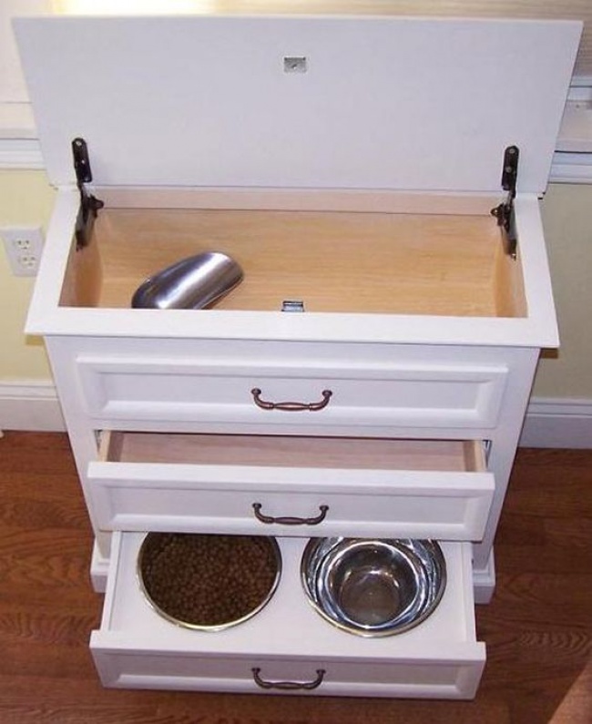 Ідея, щоб зберігати корм і миски далеко від чужих очей