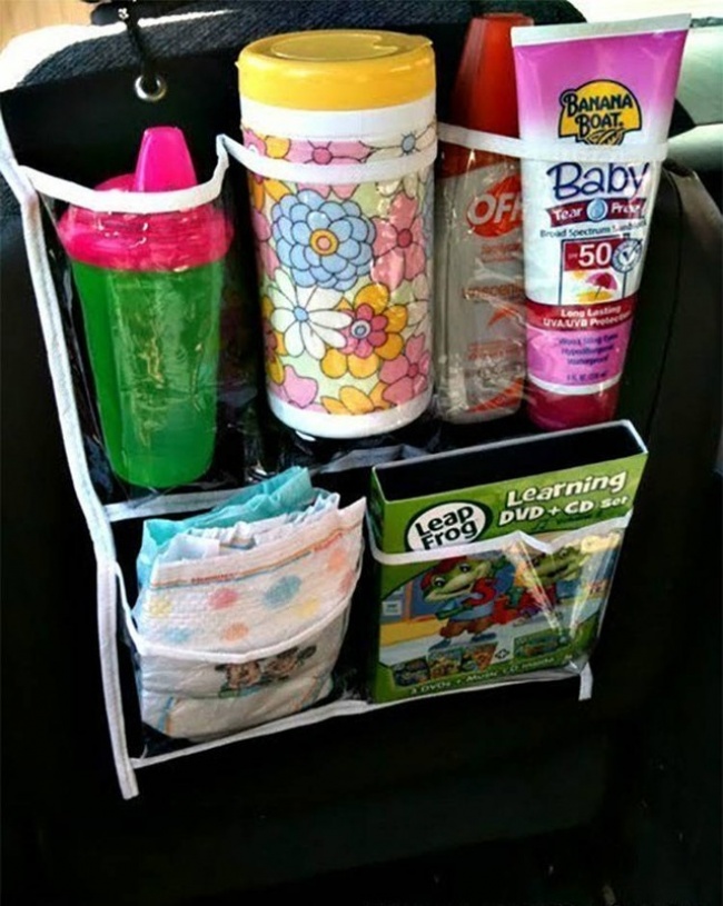 Зробіть удобнейшую дитячу косметичку з органайзера для душа — перевозити креми, підгузки, дитячі присипки і пляшки з водою і сумішами стане набагато простіше.