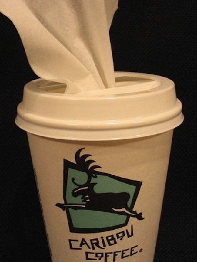 Для зберігання хусточок або серветок підійде паперовий стакан кави.