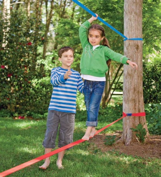 Кілька текстильних строп, туго натягнутих між деревами на різній висоті, — і майбутні акробати з задоволенням будуть проводити тут свої тренування. Схожою ідеєю діляться тут.