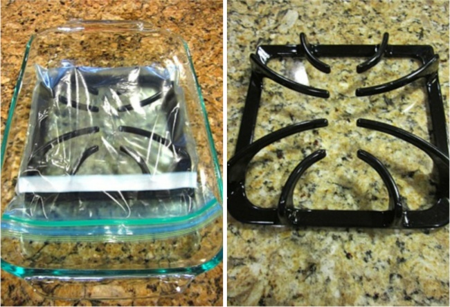 Влийте в невелику ємність трохи нашатирного спирту і залиште в холодній духовці на ніч. Вранці кухню гарненько провітріть і промийте духовку — бруд легко відстане від стінок. Запаху залишитися не повинно. Єдиний мінус — випаровування, тому працюйте з відкритими вікнами і не забудьте надіти гумові рукавички.