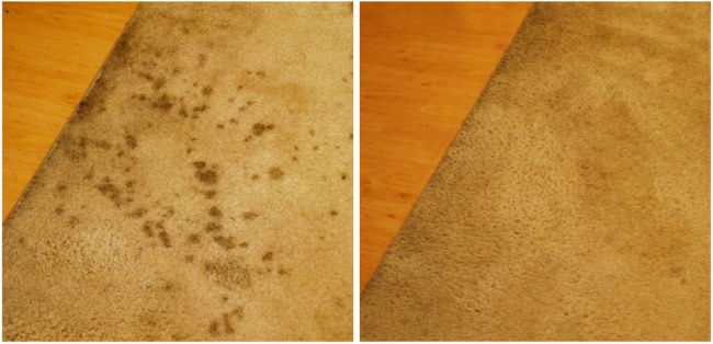 Гарненько протріть місце плями, щоб прибрати всю рідину. Посипте содою, залиште на 10 хвилин і пропилососьте. Змішайте 1 ст. л. засоби для миття посуду з 1 ст. л. білого оцту і додайте суміш в теплу воду (обсяг ― 2 склянки). Мікрофіброю гарненько протріть місце, де було пляма, і просушіть.