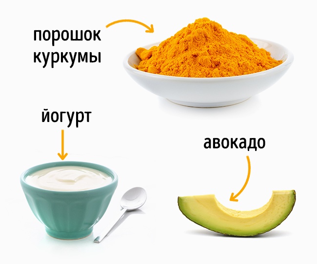 - Робіть маску в старій темній футболці, щоб не зіпсувати новий одяг плямами від куркуми і йогурту.