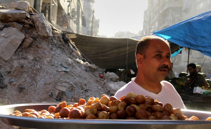 5. Чоловік торгує солодощами в зруйнованому війною місті