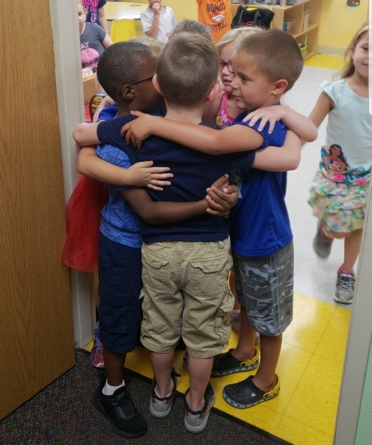 15. Малюки в дитячому садку прощаються один з одним перед школою