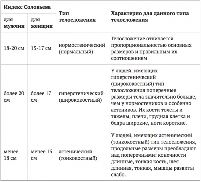 При цьому людям, що мають астенічний (тонкокостный) тип статури, з результату необхідно відняти 10%, а люди, які мають гіперстенічна (ширококостий) тип статури, повинні додати до результату 10%.