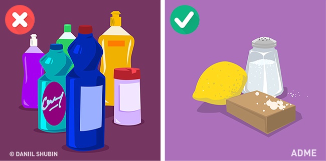 Використання дорогих миючих засобів. У багато чого, до чого ми звикли, є бюджетні аналоги: кухонна сіль повертає речам яскравість, а крейда допомагає позбутися від жирних плям. Господарське мило відбілює і видаляє плями. Лимонний сік можна додавати для ароматизації і пом'якшення білизни.
