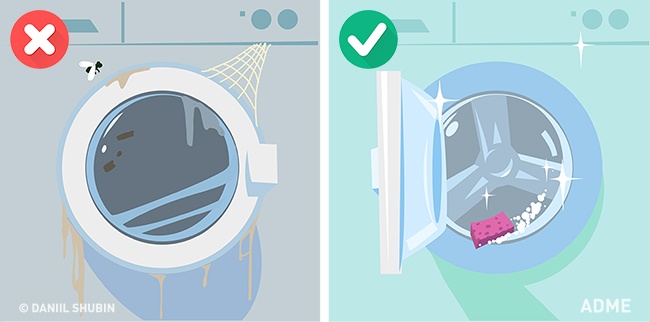 Неправильний догляд. Частіше мийте машину, не забувайте, що відсік для порошку і кондиціонера знімний у більшості машин. Оскільки під ними скупчуються миючі засоби, там потрібно мити особливо часто. Не закривайте кришку після закінчення прання, щоб дати їй висохнути і провітритися. Кілька разів на рік запускайте один цикл з гарячою водою, змішаної з білим оцтом. Буде як новенька!