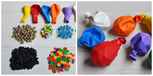 - Грати з сенсорними кульками — наповнити повітряні кульки різними матеріалами (крупа, гудзики, макарони тощо), зав'язати їх і дати дитині грати ними і вгадувати вміст.
