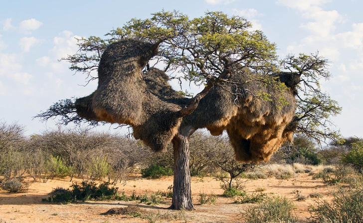 12. Це щось безформне на дереві — гніздо ткачів. Кожна пташка робить собі невелике гніздечко, а виходить таке величезне житло