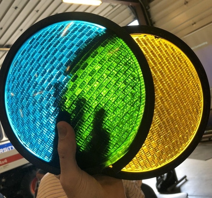 22. «Зелений колір на світлофорі виходить при комбінації блакитною та жовтою лінз»