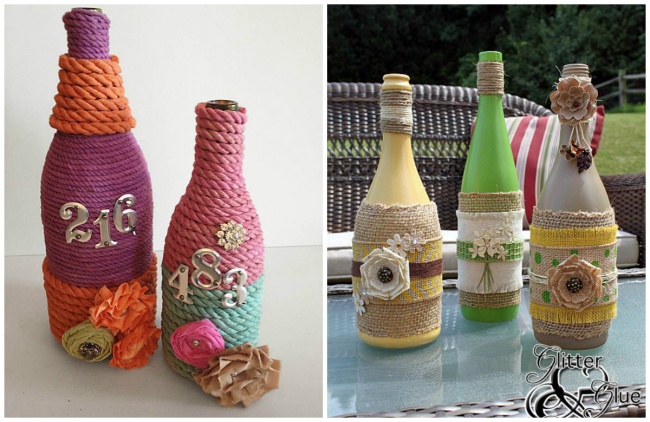 Декоровані таким чином пляшки можна використовувати для прикраси будинку, а можна і подарувати. Про те, як їх зробити, розповідається тут.