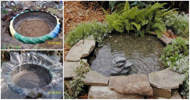 Для того щоб організувати ставок на дачі або навіть фонтан, досить тракторної шини.