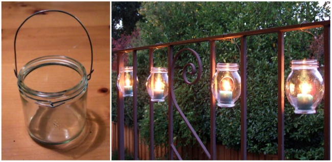 Ці чарівні свічники з банок можна повісити на паркан і насолоджуватися романтичною атмосферою. Тут можна дізнатися, як їх зробити.
