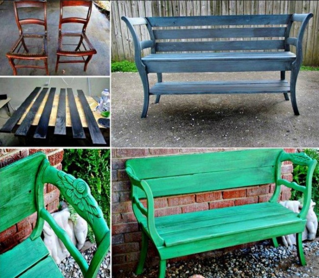 Не поспішайте викидати старі стільці, з них можна зробити лавку.