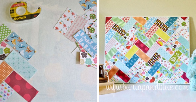 Тим, у кого припадають пилом шматочки невикористаних шпалер, можна розважитися складанням картини з «ялинковим» візерунком. Детальна інструкція мешкає прямо тут.
