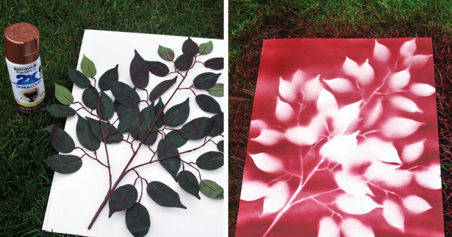 Будь-яка красива гілочка з вашого саду може стати моделлю для картини з допомогою звичайного пульверизатора, а ось тут знайдеться покрокова інструкція.