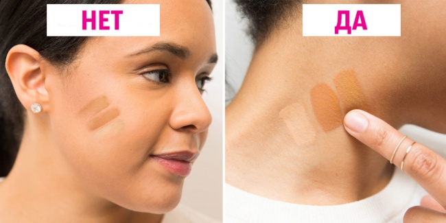 Підійдіть до вибору відтінку вашого тонального засобу з усією відповідальністю — саме від основи багато в чому й буде залежати кінцевий результат. Щоб визначити, який колір вам підходить, нанесіть кілька засобів на шию. Від впливу навколишнього середовища колір шкіри на обличчі трохи відрізняється, тому такий спосіб найбільш оптимальний.