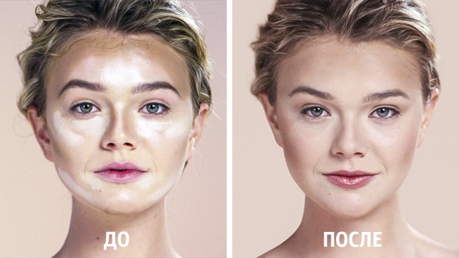 Тон слід наносити легкими рухами пальцями або спеціальної широкої пензлем, рухаючись від центру особи і приділяючи особливу увагу кордонів біля волосся і складкам носа.
