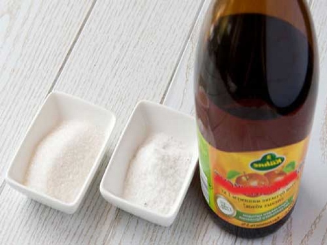 Очистити до блиску ванну і позбутися від застарілого нальоту можна за допомогою суміші оцту і солі. Змішуємо інгредієнти в пропорції 1:1 і відчищаємо ванну до білизни.