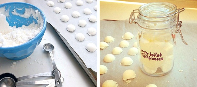 Для очищення і освіження унітазу можна самостійно приготувати чистячі бомбочки. Всього 1-2 бомби, кинуті в унітаз, дадуть не тільки гігієнічний ефект, але і приємний запах.