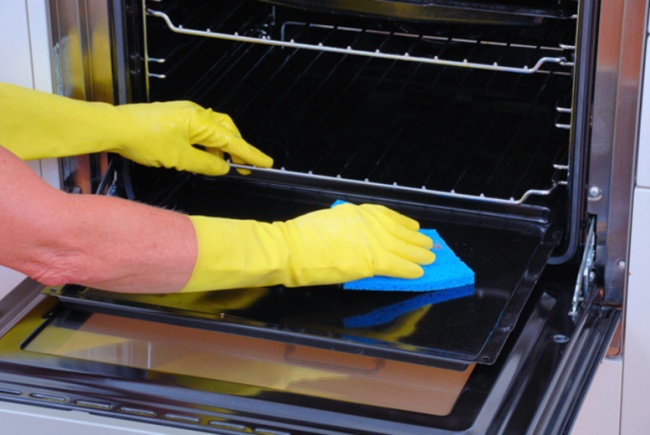 Очистити духову шафу від жиру і нагару можна за допомогою розпушувача для тіста. Протираємо гарячою водою духовку і присипаємо розпушувачем, збризкуємо поверхню водою з пульверизатора. Через півгодини прибираємо грудочки вологою ганчіркою і промиваємо духовку водою. Особливо добре цей спосіб прибирає жир зі скляних дверцят.