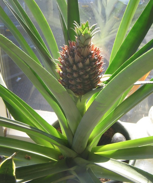 Для особливо терплячих садівників, які люблять експерименти. Щоб його виростити, потрібно верхня частина з листям. При цьому потрібно зрізати всі частини фрукта, це потрібно робити обережно, щоб збереглися відростки коренів (маленькі кружечки на плоскому підставі стебла). Потім необхідно видалити зростаючі знизу листя до висоти 2-3 см. Посадіть свій ананас в теплу грунт з гарним дренажем, щоб у ній не накопичувалася вода. Поливати треба регулярно лише перший час, коли рослина зміцніє і оформиться. Потім поливати 1 раз в тиждень. Ви помітите зростання вже в перші місяці, але пройде не менше 2-3 років, перш ніж ви зможете спробувати свій урожай.