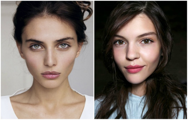 Щоб зробити природний макіяж, дівчата з темним відтінком волосся можуть скористатися чорною підводкою для очей. На губах буде відмінно виглядати напівпрозорий вишневий відтінок помади.