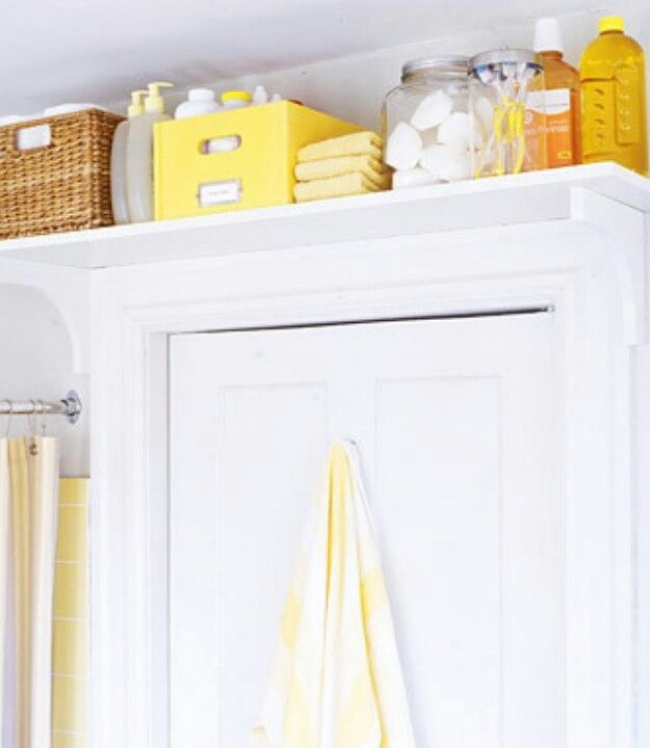 31. Чистячі засоби, паперові рушники та інші речі, які потрібні нечасто, зручно тримати на полиці над дверима.