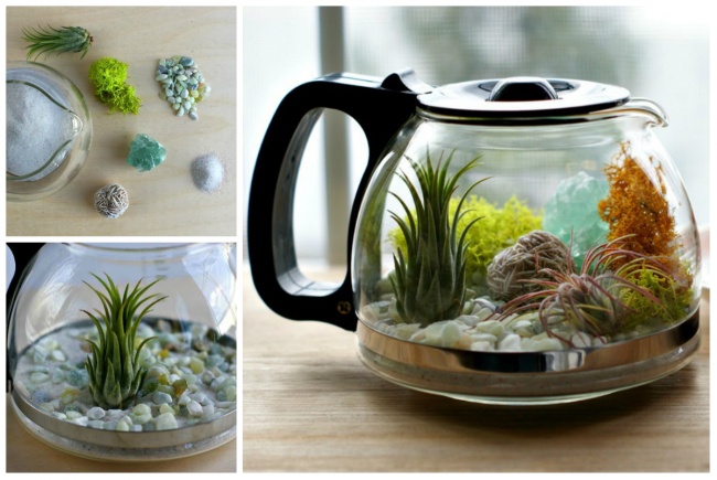Звичайний скляний чайник можна перетворити на чудовий маленький тераріум.
